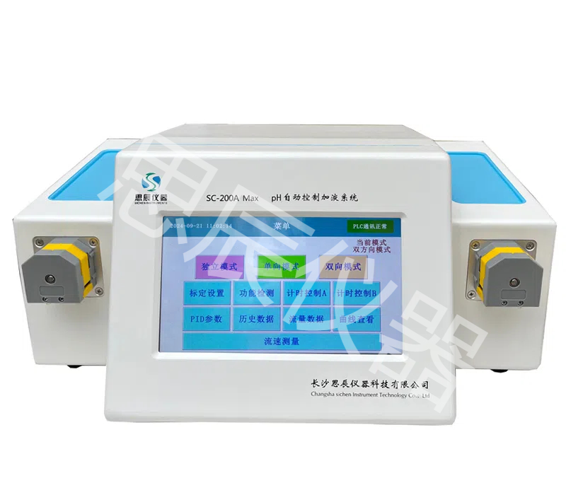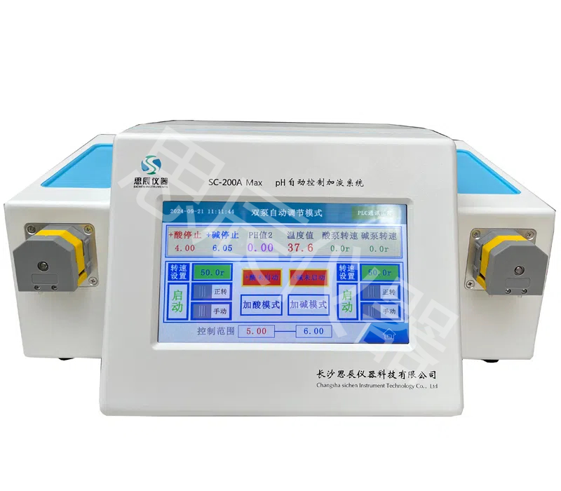 本系統是長沙思辰儀器研發團隊最新研制開發的第三代高精度pH自動控制系統,為高等院校、科研院所實驗室,中外研發企業及研發生產等部門精心設計制造的,并且擁有完全自主的知識產權。獲得了國家一項發明專利【ZL201410349779.8】及多項實用新型專利【ZL201721373766.X】;【ZL 201420406067.0】;【ZL201420406055.8】。整機采用PLC控制,并與定制的蠕動泵聯機進行加酸或加堿來自動調節容器中溶液pH的預設值。是催化、制藥、化工、電鍍、生化、生物發酵、植物提取物車間,科院院所等實驗室或生產中小試場所理想的pH監測自動控制系統。