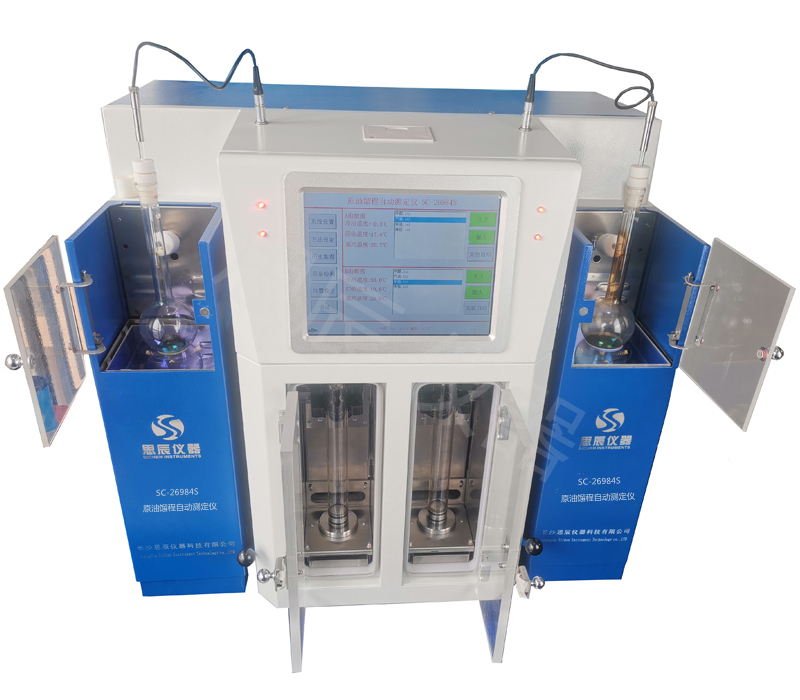 本儀器是我公司新研發的第三代產品,根據國家標準GB/26984-2011《原油餾程的測定》標準試驗方法設計制造的。是集機械、光學和電子技術于一體,采用進口傳感器,量筒回收體積讀數采用進口數控精密光學跟蹤檢測系統。自動完成餾程全過程實驗,廣泛適用于水含量質量分數不大于0.2%的原油的測定。對于水含量質量分數大于0.2%的原油需進行脫水處理后也適應??赏瑫r進行兩組試樣的測試實驗,從而大大得提高了工作效率.