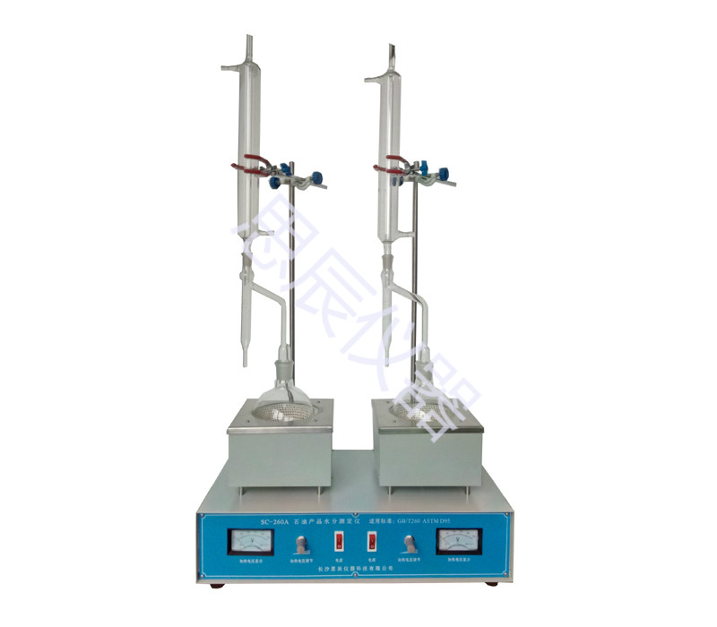 本儀器是根據(jù)中華人民共和國最新標(biāo)準(zhǔn) GB/T260-2016《石油產(chǎn)品水含量的測定法 蒸餾法》規(guī)定的要求設(shè)計制造的,適用于按 GB/T 260標(biāo)準(zhǔn)規(guī)定的試驗方法測定石油產(chǎn)品中的水分含量。本儀器也適用于按 GB/T512《潤滑脂水分測定法》的標(biāo)準(zhǔn)規(guī)定的試驗方法測定潤滑脂中的水分含量。本儀器是雙聯(lián)式結(jié)構(gòu),可同時進行兩只試樣的試驗。